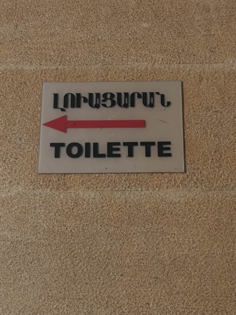 «Հանգիստ խղճով» հանդիպմանը ներկայանալու համար հարցուփորձ եմ անում զուգարանի տեղը և մոտ հինգ րոպե փնտրելուց հետո միայն գտնում, քանզի նման գրությամբ ցուցանակ չկար, «Լուացարան» էր միայն․ նախորդ օրվա պաշտոնական հանդիպման ընթացքում տեղացի գրողները, հրատարակիչներն ու կիրակնօրյա դպրոցների ուսուցիչները պնդում էին, որ արևմտահայերենի ու արևելահայերենի հասկացման խնդիր չկա, թե նույն լեզուն է․․․ Գուցե․․․Վստահ չեմ․․․