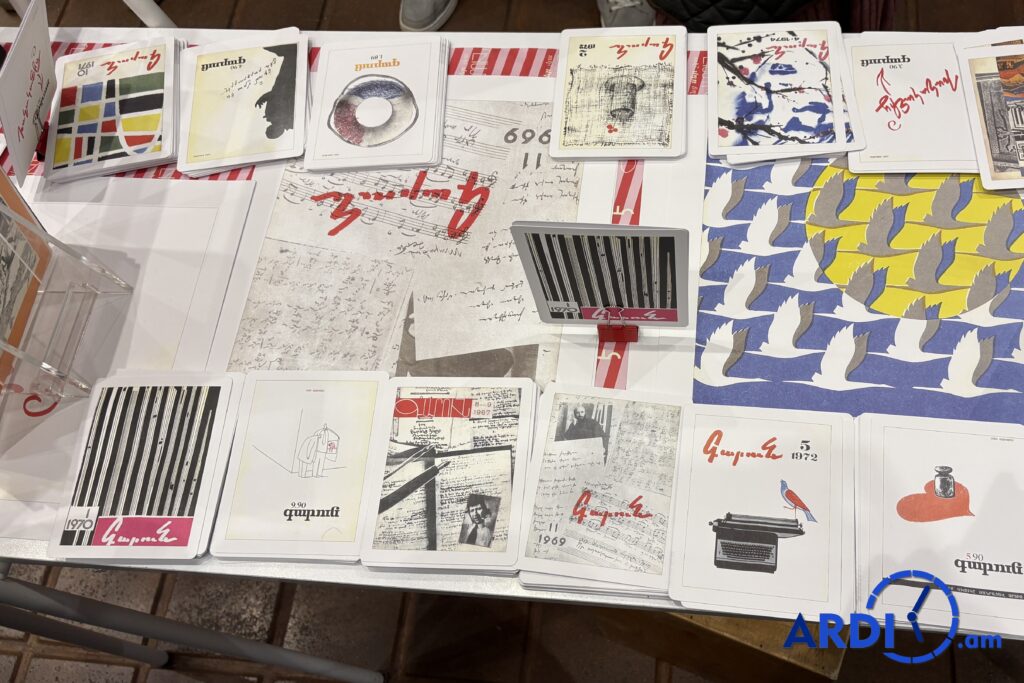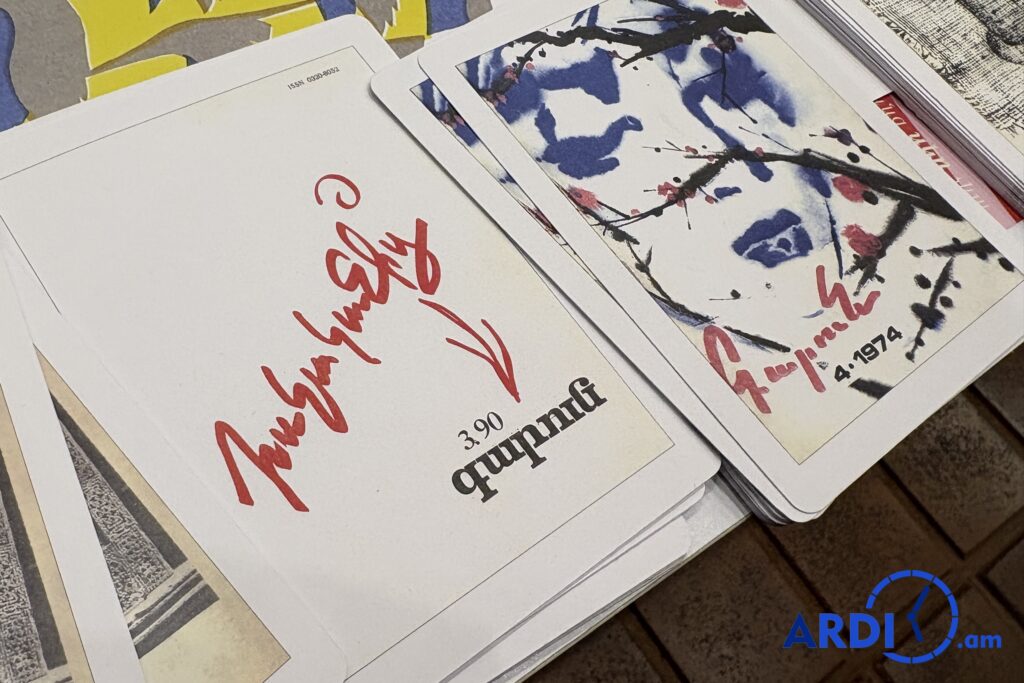 «Գարուն» խորագրով միջոցառման կազմակերպիչ Մարիամ Ալոյանի խոսքով՝  ցուցադրության համար առանձնացվել են 1967–1995 թվականներին տպագրված 30 համարների շապիկները, որոնք վերատպվել են։ Դրանց թվում են Վաղարշակ Արամյանի, Մարտին Տոնոյանի, Գրիգոր Թորոսյանի, Կարապետ Փաշյանի, Ավետիս Օհանյանի, Վաղինակ Մանդակունու, Կարեն Սմբատյանի գրաֆիկաները, Արթուր Թարխանյանի, Սպարտակ Խաչիկյանի և Հրաչիկ Պողոսյանի էսքիզները, Արա Շիրազի ֆոտոմոնտաժը, Պողոս Պողոսյանի ֆոտոկոմպոզիցիան։ Ցուցադրության մեջ ընդգրկված են նաև Վահան Քոչարի, Գագիկ Հարությունյանի, Զավեն Խաչիկյանի և այլոց գործերը: