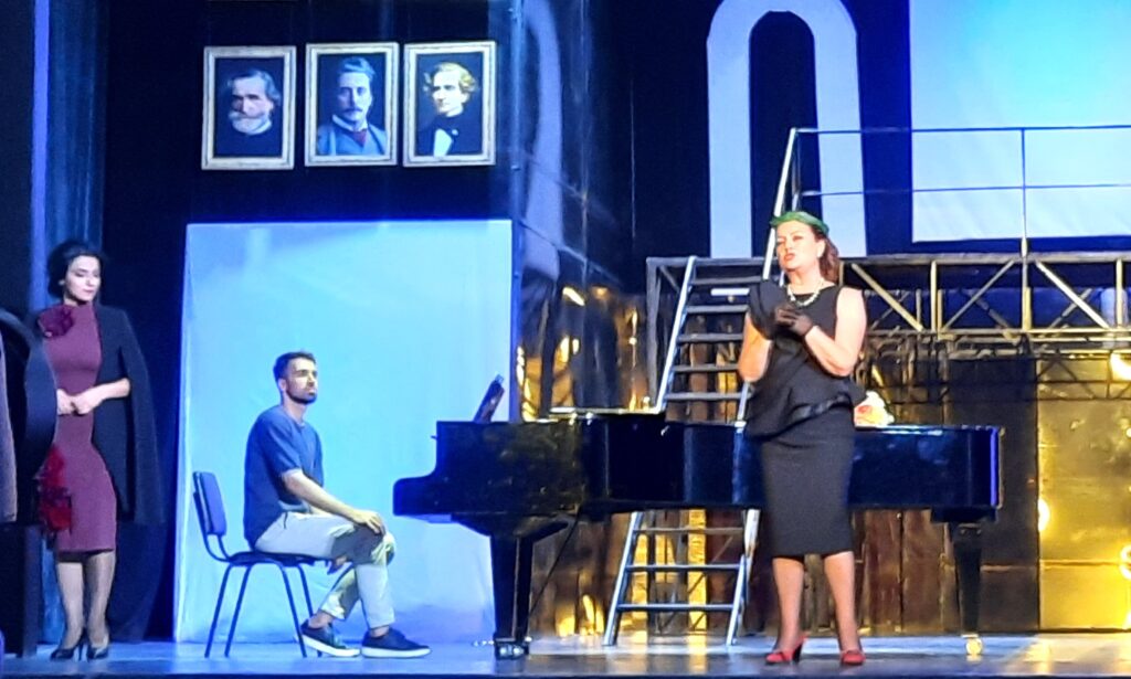 Քիչ անց նա բեմում է, որտեղ նաև դաշնակահարն է՝ Արեն Ամիրյանի մարմնավորմամբ: Հետո առաջին և երկրորդ գործողությունների ընթացքում իրար են հաջորդում երաժշտա-դերասանական փոքր կազմի մյուս դեմքերը՝ սոպրանոներ Աննա Ղարագյուզյանը, Անի Յուխանյանը, տենոր Կարեն Նալբանդյանը, բեմի աշխատակից Վահե Պետրոսյանը: