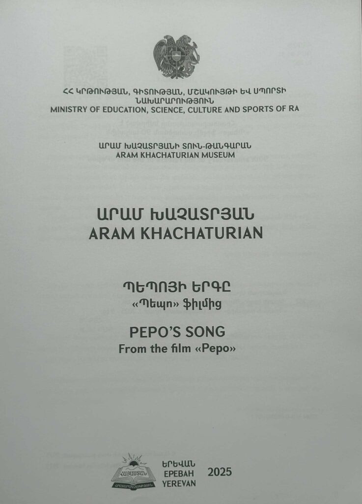 Կինոերաժշտության ոլորտում «Պեպո»-ն Արամ Խաչատրյանի դեբյուտն էր, որը նշանակալի տեղ զբաղեցրեց հայ կինոյի պատմության մեջ: «Կինոերաժշտություն գրելը ինձ համար եղել է դժվար, բայց չափազանց հետաքրքիր և շնորհակալ աշխատանք»,- գրել է Արամ Խաչատրյանը: 2013թվականին Արամ Խաչատրյանի ձեռագիր նոտաները և կինոերաժշտությունը ընդգրկվել են ՅՈՒՆԵՍԿՕ-ի «Աշխարհի հիշողություն» ծրագրի միջազգային ռեեստրում: